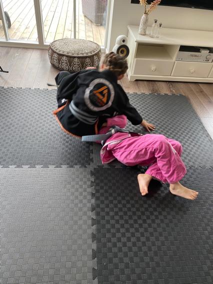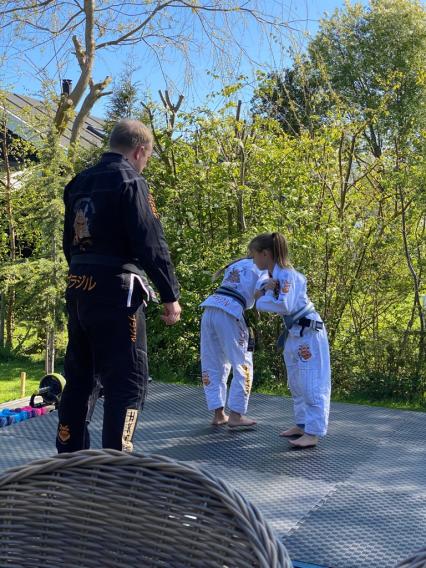 Jeg træner 5 gange om ugen med de store drenge fra Jiujitsu klubben og så træner jeg 1 gang om ugen privat træning af 1-2 timer med min træner Brian Bergreen