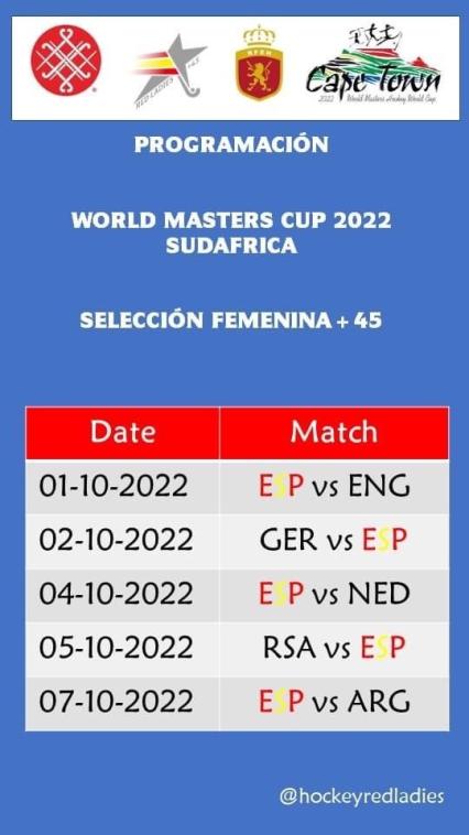 Somos la selección femenina de hockey hierba 45+ y próximamente participaremos en el mundial masters que se celebrará en Ciudad del Cabo (Sudáfrica) del 1 al 10 de octubre.